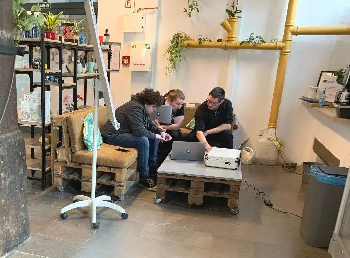 Nach dem Ankommen am MakerPort das Wichtigste zuerst: Pizza bestellen! Niemand sollte hungrig arbeiten. Anschließend wurde mithilfe einer Präsentation, welche begleitend für den ganzen Tag erarbeitet wurde, der Ablaufplan vorgestellt.
