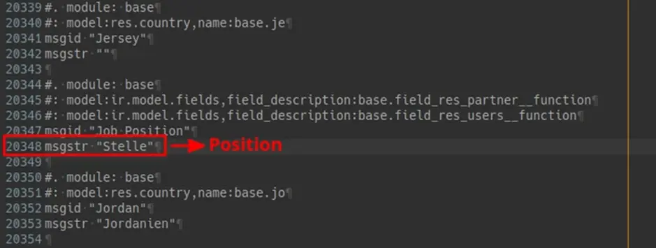 Innerhalb dieser Datei suchen wir die falsche Übersetzung und ändern diese.