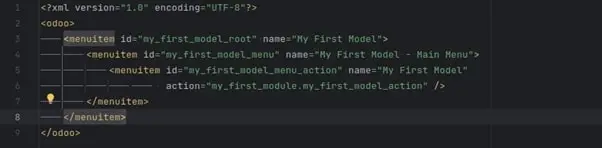 Erstellen sie dann die Datei my_first_model_menus.xml im Ordner views mit folgendem Inhalt: