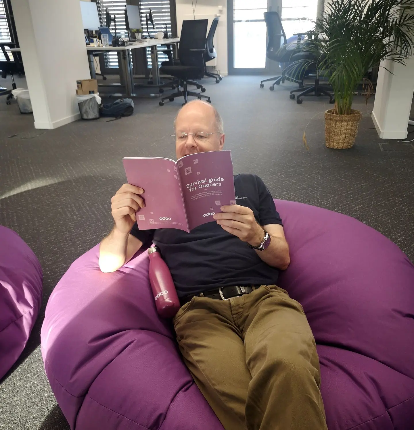 Unser Account Manager Christoph informiert sich im Survival Guide for Odooers.