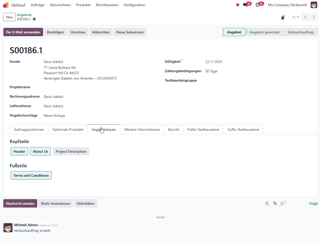 Angebotsgestaltung im Odoo-Standard mit dem Angebotsbauer
